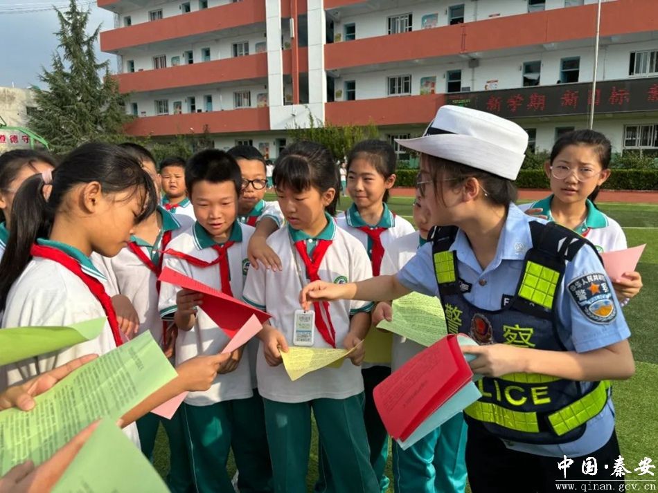 新学期开始,为切实做好开学季道路交通安全宣传工作,进一步加大交通安全知识宣传教育力度,增强广大师生的交通安全意识,9月3日,秦安县公安局交警大队联合北关派出所深入秦安县第五小学开展开学第一课“关爱生命知危险·关注安全会避险 交通安全进校园”宣传教育活动。