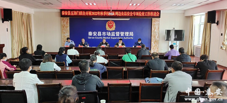 9月8日,秦安县市场监督管理局、县教育局、县卫健局、县公安局、县消防救援大队五部门联合召开2022年秋季开学校园及周边食品安全专项检查推进会,对全县学校食堂(含托幼机构)食品安全主体责任及学校食品安全工作进行再安排、再部署,进一步深入贯彻落实中央和省市县有关食品安全工作会议精神,统筹推进疫情防控和秋季开学学校食品安全工作,切实保障广大师生饮食安全和身体健康。