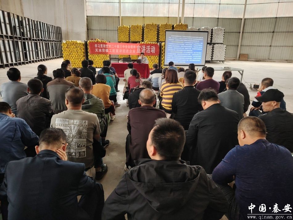 宣讲活动中,“甘肃省五一劳动奖章”获得者、秦安大地湾艺术彩陶传习工作室主任康晓龙,天水市劳动模范、秦安县生产力促进中心高级工程师潘虎林,结合各自工作实际和亲身感受,对党的二十届三中全会精神进行了深入浅出地解读。他们以生动的事例、朴实的语言、真挚的情感,分享了坚守一线、久久为功、恪尽职守的心得体会,勉励广大职工新时代要有新作为,热爱劳动、热爱工作,干一行爱一行,在自己的工作岗位上,不断学习创新,把劳模工匠精神发扬光大,让在座的每个人都获益匪浅,纷纷表示要在平凡的岗位上干出不平凡的事情。