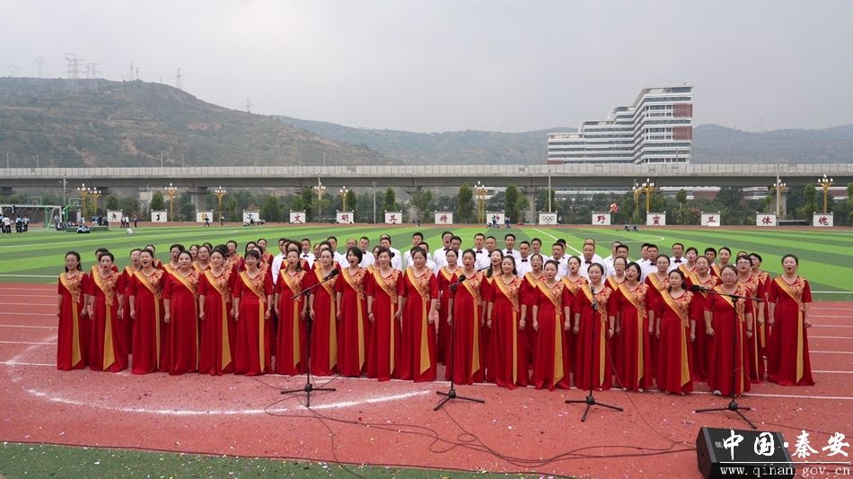 整个开幕式,气势磅礴,场面宏大,视觉冲击感强,由秦安五中初中部带来的大型表演将现场气氛推向了高潮。