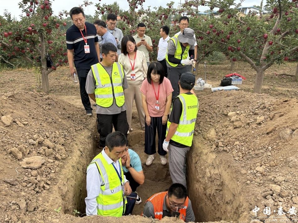 剖面样调查采样主要是挖掘土壤剖面、观察记载剖面形态、采集各发生层土壤样品、容重、制作纸盒标本和整段标本等,是土壤普查的重要组成部分,这项工作不仅技术含量高、专业性强、劳动强度大,而且是成果汇编的重要依据,对于后期土壤类型图的制作具有核心作用,为确保普查数据真实、准确和完整,秦安县三普办特邀省级相关专家组成质控组,全程指导剖面调查与采样工作,对剖面挖掘整修的规范性、发生层层次划分与描述、信息填写准确性、剖面土壤标本采集等关键环节进行了全程质控指导。此次土壤剖面样品调查采集由甘肃省地质调查院组建专业调查采样队完成,秦安县三普办指派质控人员与采样队并肩作战,最大程度上协助采样队做好地块踏勘、农户沟通、农户调查等事宜,有效推动了剖面样点的采样进度,顺利完成了全县剖面样点采样工作。