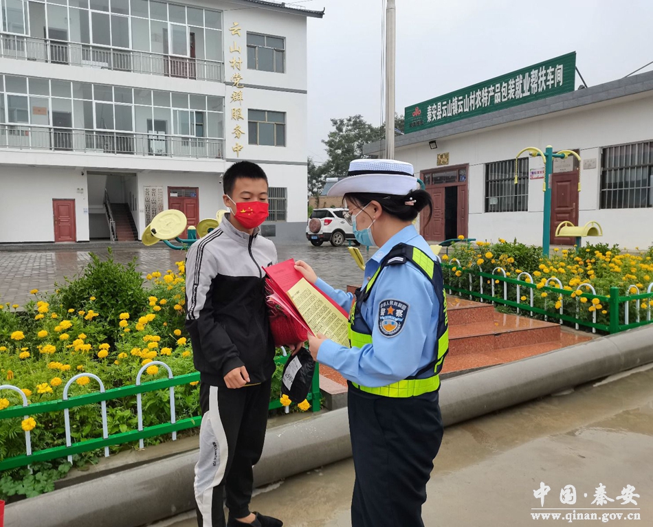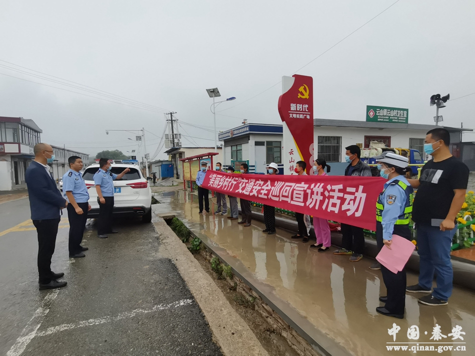 为深入推进夏季突出交通违法行为专项整治“百日行动”,进一步强化农村地区交通安全宣传力度,有效预防和减少农村地区道路交通事故发生。8月24日,秦安县公安局交警大队宣传民警联合云山镇交管站持续开展“美丽乡村行”交通安全巡回宣传教育活动,将交通安全知识带到群众身边。