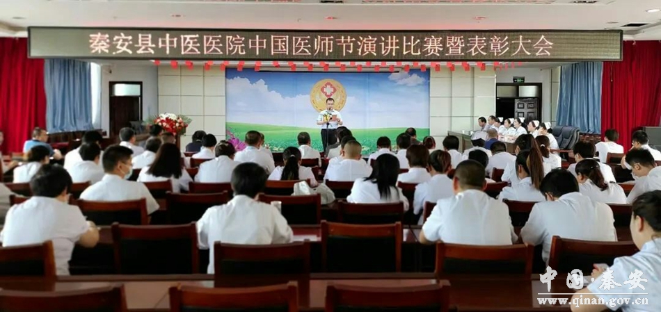 为表彰先进、激励士气、鼓舞干劲,动员全院广大医务工作者弘扬职业精神,推动新时期医院高质量发展努力奋斗,8月19日,在第五届中国医师节到来之际,秦安县中医医院举办了秦安县中医医院中国医师节演讲比赛暨表彰大会,院领导班子成员及全院医师、药师、技师和护理人员代表参加了活动。