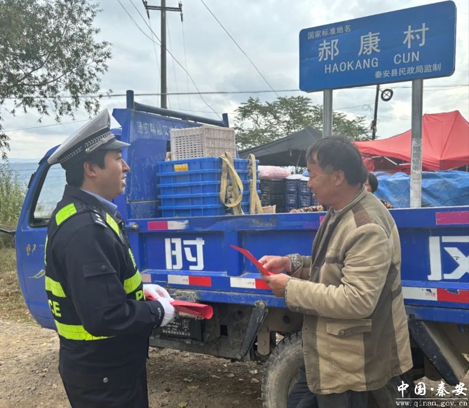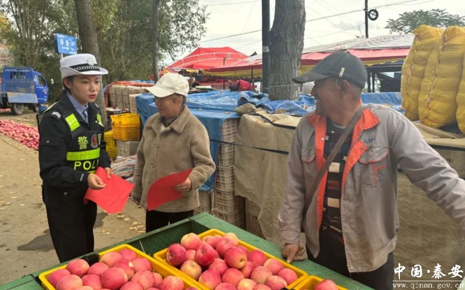当前正值苹果丰收季,为持续推进农村地区交通安全宣传活动,全力预防和减少农村道路交通事故。10月11日,秦安公安交警积极行动,组织宣传民辅警走进辖区云山镇田间地头、农户家中,上门开展交通安全宣传教育,为果农送上交通安全“大礼包”,让交通安全知识深入群众心中。