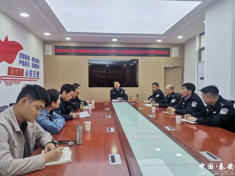 10月14日,秦安县公安局交警大队组织召开严厉打击非法中介扰乱秩序净化考场环境警示会。