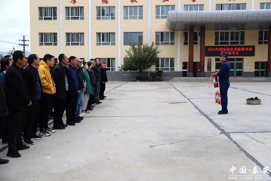 为有效落实单位消防安全主体责任,加强保安行业消防安全管理,全力维护消防安全形势稳定。近日,秦安县消防救援大队针对参加2024年国家保安员资格考试秦安考点的保安人员开展了一场别开生面的消防安全培训及演练活动。