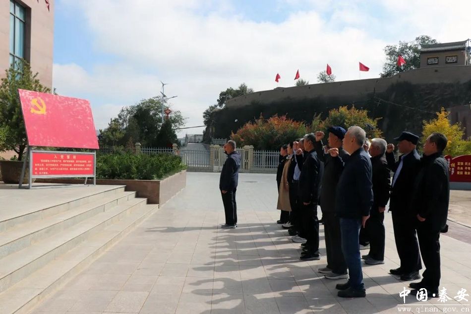 参观的全体党员在讲解员的讲解下详细了解了榜罗镇会议的背景、会议经过和取得的历史成果。一幅幅史料图片、一件件历史实物、一个个真实故事,全面展现了中国工农红军红25军及红一、二、四方面军在长征途中过境通渭时的历史画卷,再现了革命先辈们艰苦的光辉岁月和英勇的斗争历程。最后,参观了榜罗镇会议旧址、毛泽东和张闻天故居、革命文物陈列馆和打麦场会议旧址,并组织党员开展了面对党旗宣誓、重温入党誓词。
