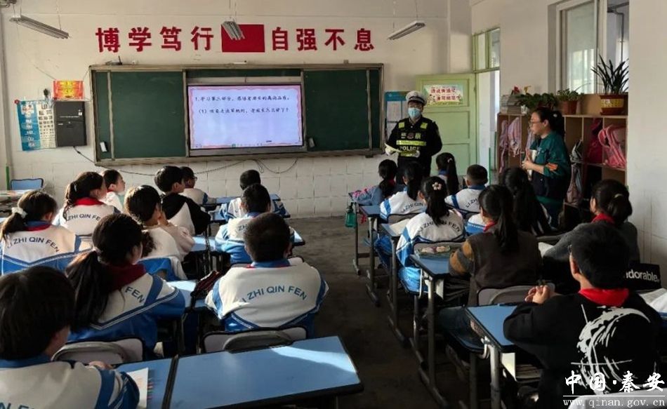 10月18日,秦安县公安局交警大队民辅警走进莲花镇中心小学开展交通安全教育宣传活动。
