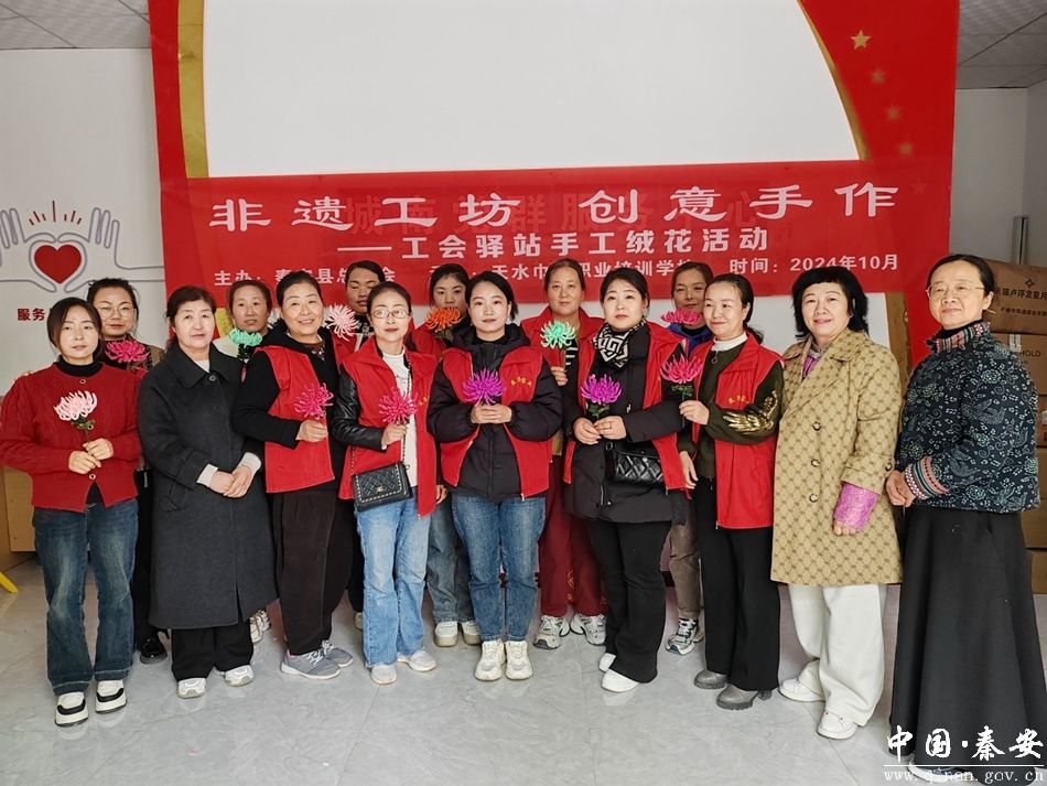 10月23日,秦安县总工会联合市总工会在何川社区红色驿站举办“非遗工坊 创意手作”传统手工技艺绒花制作培训活动,全县新就业形态劳动者和女职工代表20余人参加活动。