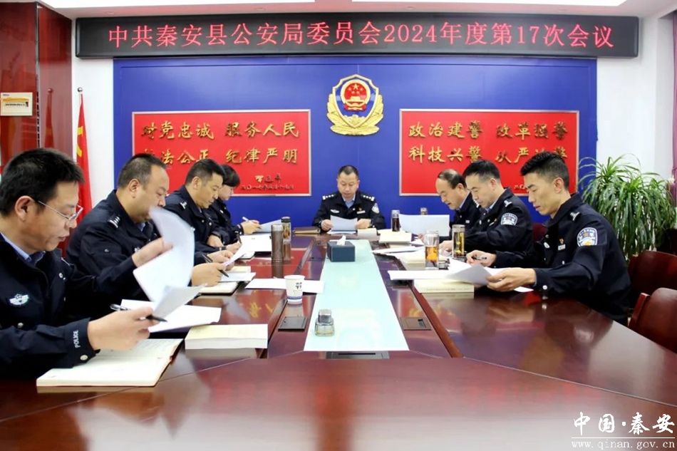 近日,秦安县公安局召开党委会会议,专题传达学习贯彻全国公安厅局长座谈会精神,省厅党委(扩大)会议精神,研究部署贯彻落实意见。副县长、县公安局党委书记、局长赵智彦参加会议。