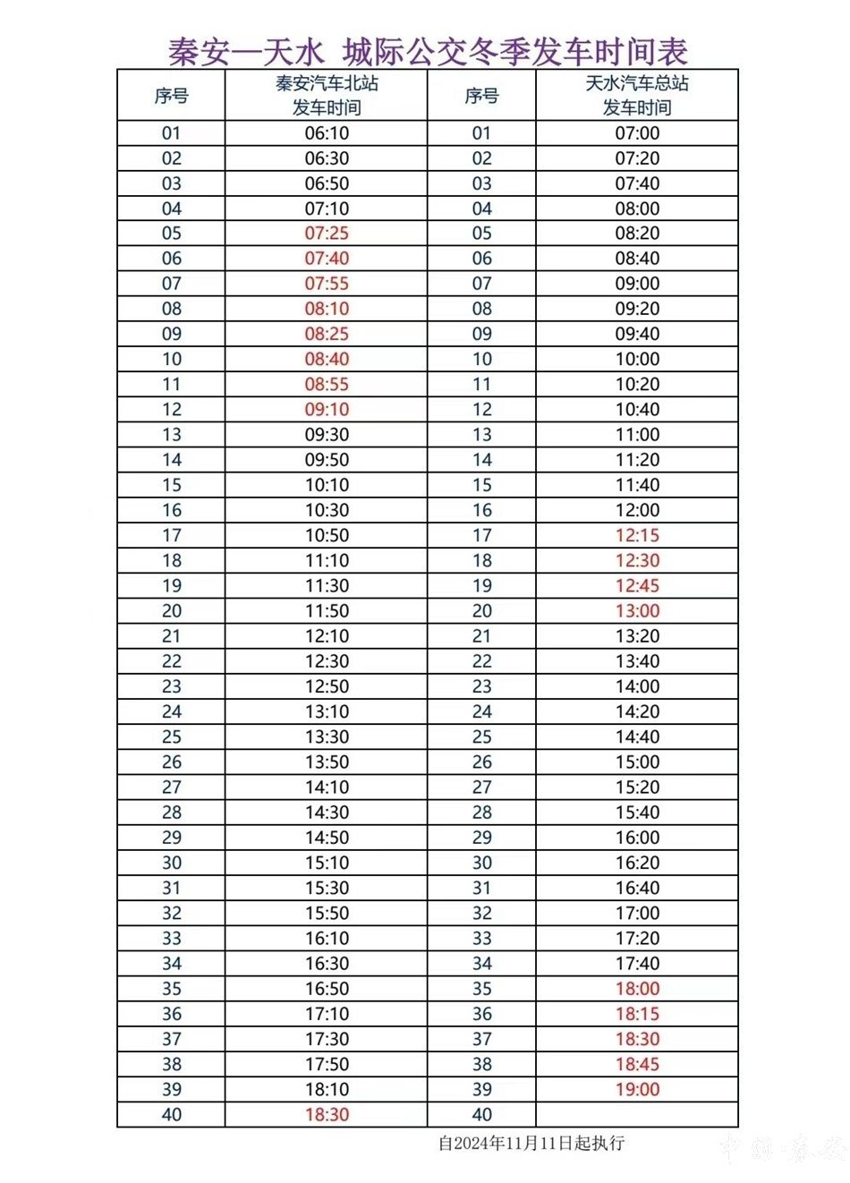 11月11日起,秦安至天水城际公交执行冬季发车时间。
