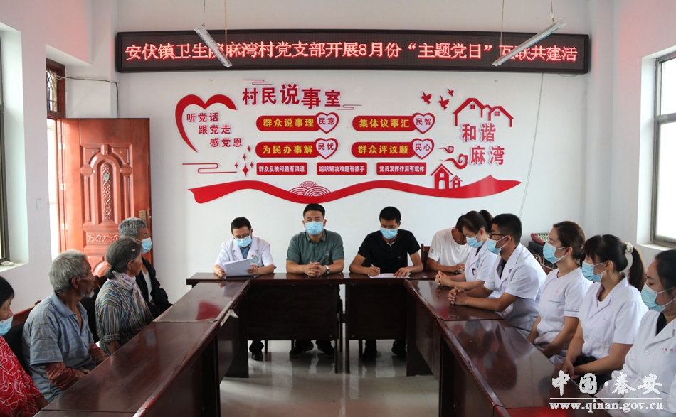 按照县委组织部统一安排,8月5日,安伏镇卫生院麻湾村党支部召开8月份“主题党日”互联共建活动。秦安县政府办、天津市津南区支医工作队、安伏镇卫生院全体党员参加活动。