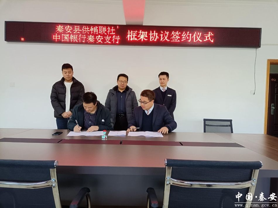 11月29日,秦安县供销联社与中国银行秦安支行就“承接国家战略、落实重大决策、畅通物流循环、壮大县域经济、促进乡村振兴”等领域达成共识,在秦安县供销联社签订战略合作协议。