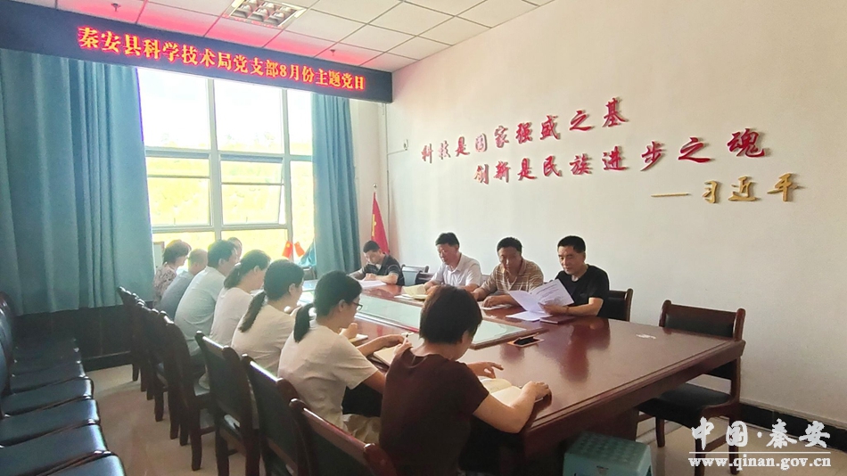 8月5日,秦安县科技局党支部组织全体党员开展8月份“主题党日”活动。学习《习近平谈治国理政》第四卷部分内容,以及习近平总书记在省部级主要领导干部专题研讨班上的重要讲话精神和《中国共产党党徽党旗条例》。