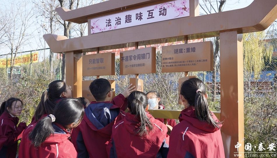 秦安县葫芦河法治文化主题公园依景依势注入法治元素,包括习近平法治思想、宪法、民法典等宣传内容,融法于景,寓教于园。迎着初冬暖阳,在讲解员的带领下,师生们踏着河畔步道有序参观了法治公园的各个主题区域,沉浸式感受着法治文化气息。讲解员向同学们细致地解说了习近平法治思想、宪法、民法典等相关内容,同时以现场提问、情境创设的方式与同学们进行互动,现场气氛热烈。在宪法主题广场,师生们还开展了宪法宣誓活动,进一步激发了同学们学习宪法、尊崇宪法的自觉性和积极性。