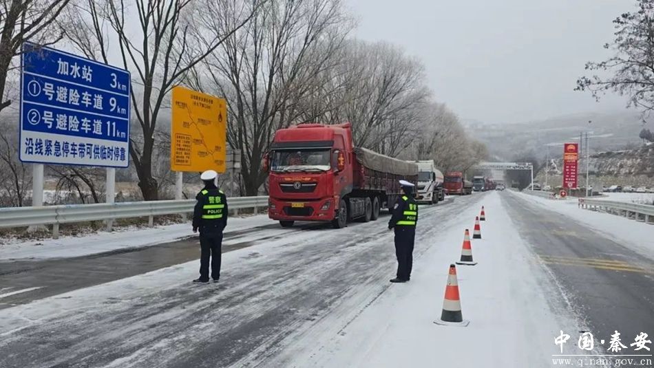 针对G247线王铺梁路段积雪严重的情况,交警大队联合秦安公路段融雪保畅工作,并采取远端分流、近端管控、劝返等措施,引导驾驶人合理规划行车路线。风雪中,大队执勤民辅警主动协助开展除雪融冰工作,并通过喊话提示等方式,不断提醒过往车辆安装防滑链、行人减速慢行、注意避让,全力守护广大群众出行安全。同时,各镇、各部门充分利用“两微”(微博、微信)等新媒体平台,及时发布恶劣天气预警、实时路况信息和交通管制措施,宣传冰雪天气安全驾驶常识,加大交通安全提示力度,最大限度消除各类交通安全隐患,坚决确保全县道路交通秩序安全、平稳、有序。