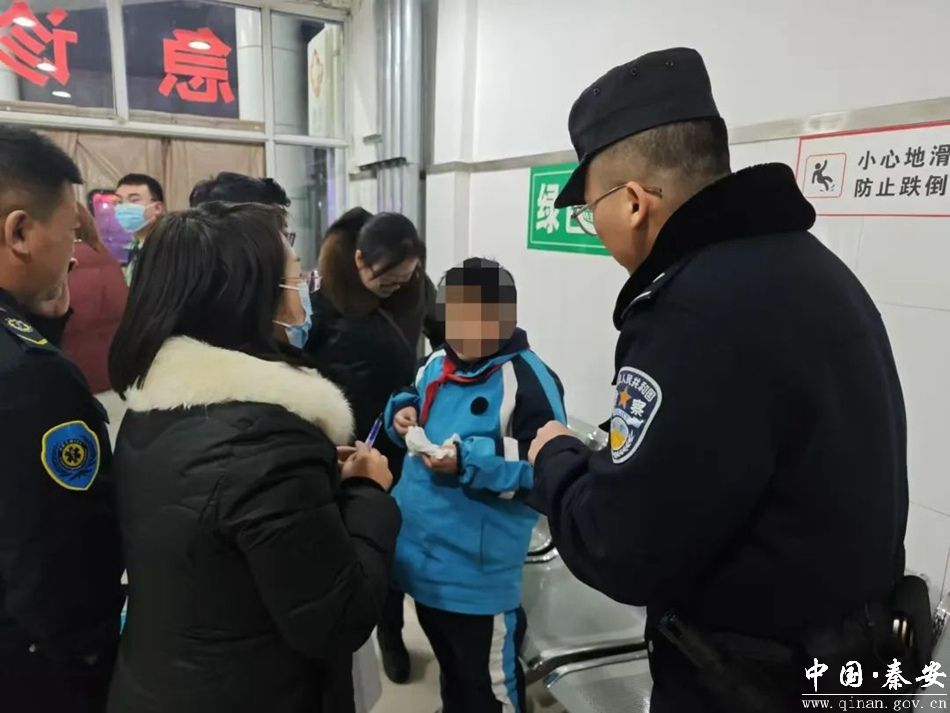 12月11日下午,秦安县公安局北关派出所民警在开展“护学岗”工作时,及时救助一名受伤学生。