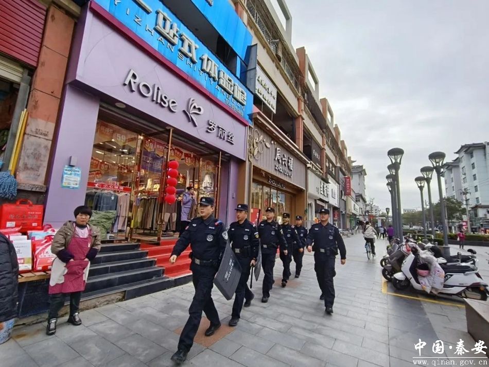 守护安全“再加码”。秦安县公安局强化显性用警,科学配备警力,采取“点、线、面”和“车巡+步巡+视频巡”相结合等方式,日均投入警力150余人次,紧盯学校、医院、广场、车站、步行街等重点部位、重点区域以及人员密集场所的巡逻防控,最大限度延伸“巡防线”、扩大“守护圈”,以街路面“见警察、见警车、见警灯”的安全感,为群众点亮“平安灯”、照亮“平安路”。