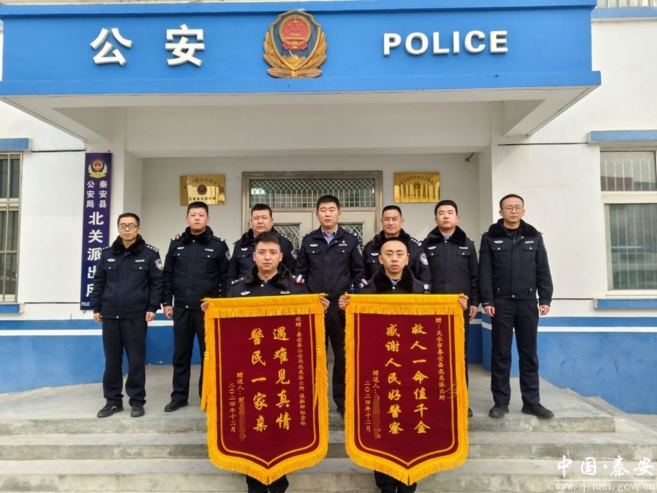 看到女儿安全回家,身无大恙,刘某某夫妻二人喜极而泣。为了表达内心深厚的谢意,二人特地从不远千里的安徽赶来秦安县公安局北关派出所,将两面印有“救人一命值千金,感谢人民好警察”“遇难见真情,警民一家亲”字样的锦旗送到民警手中以表致谢。