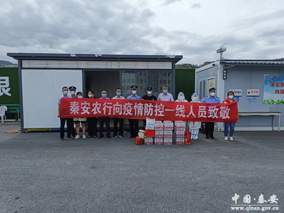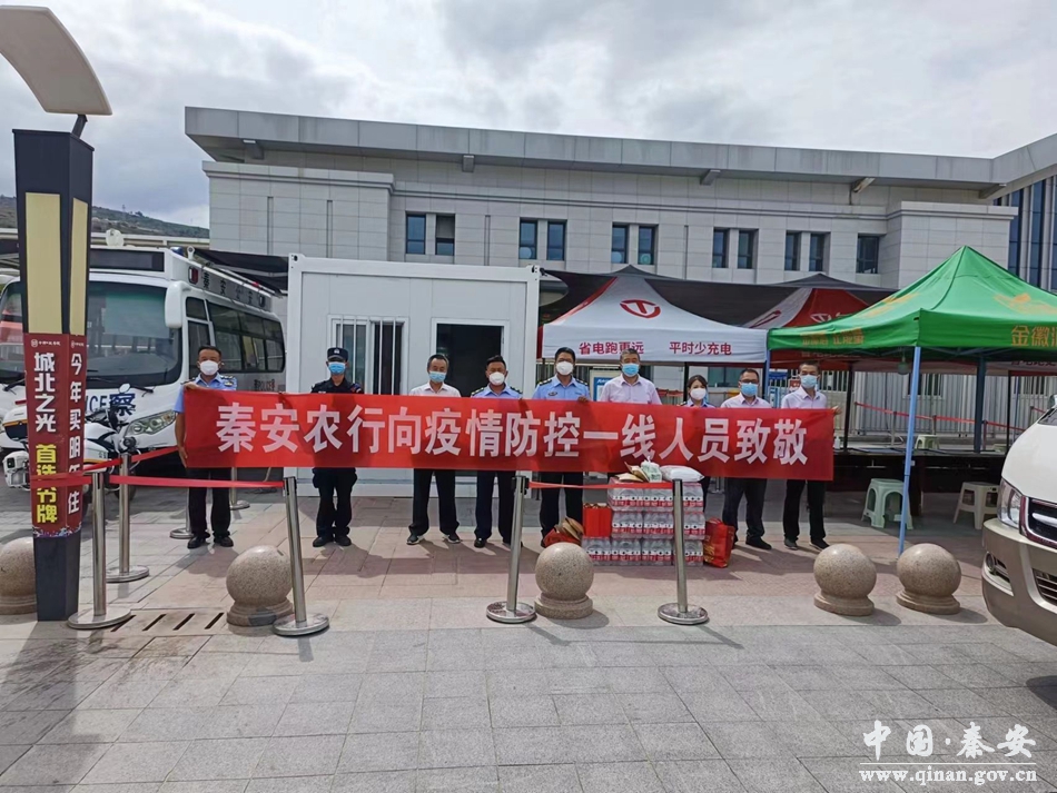 7月21日,农行秦安县支行党委派出慰问组,到秦安高铁站、天平高速入口处、天巉公路入口处慰问在高温下坚守疫情防控一线的工作人员,向他们送上防疫及防暑降温物品,以实际行动支持疫情防控工作。