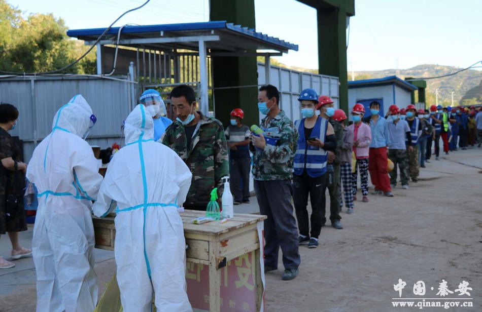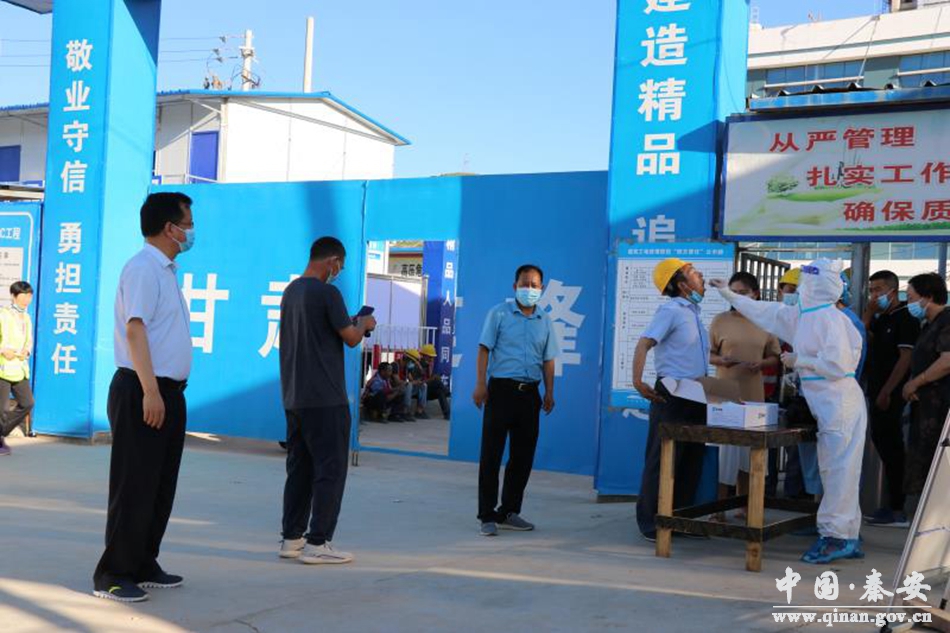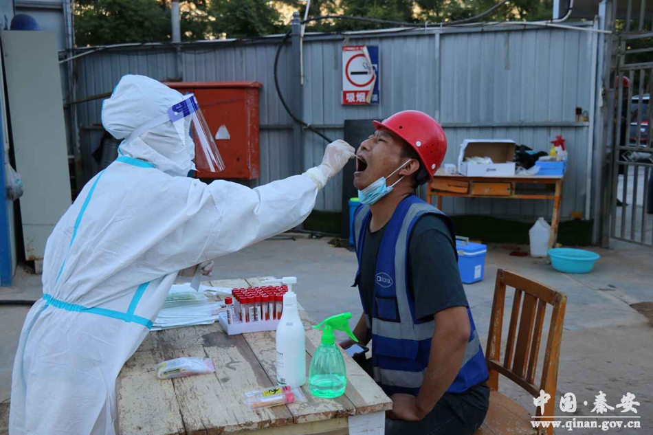 为贯彻落实省市县疫情防控工作要求,切实加强建设施工领域疫情防控工作,7月22日下午,秦安县人民医院负责人带领两组七人的核酸采样队到县医院异地扩建项目工地,为465名建筑工人进行核酸采样。