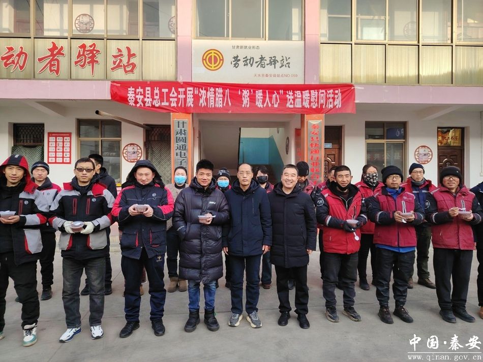 俗话说“过了腊八就是年”,在这一天吃腊八粥,有迎接祥瑞、温暖、圆满、和谐等意义。为营造欢乐祥和的节日氛围,发挥工会驿站阵地作用,1月7日,秦安县总工会开展“浓情腊八‘粥’暖人心”送温暖慰问活动,为200余名新就业形态劳动者送去暖心的腊八粥,将党和政府的关爱及工会组织的温暖送到他们身边。