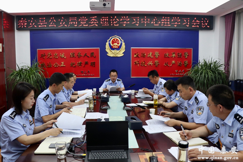 7月17日晚,秦安县公安局召开党委理论学习中心组学习会议,重点学习习近平总书记在湖北武汉、新疆考察时重要讲话精神、认真传达学习了习近平总书记在庆祝香港回归祖国25周年大会暨香港特别行政区第六届政府就职典礼上的重要讲话精神,研究贯彻落实意见。县政府副县长、公安局党委书记、局长薛天胜主持会议并讲话,在家局党委班子成员参加会议。