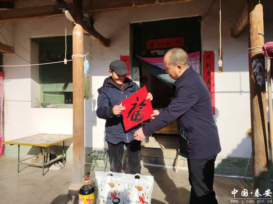 慰问组一行带着深切的关怀,走进特殊困难群众家中,与他们亲切交谈,详细了解村民们的生产、生活、收入状况,特别是村民在医疗、就业及子女上学等方面的政策落实情况,为村民送上米面油等慰问品的同时,还为大家送上了寓意吉祥的春联和书法“福”字卡纸斗方,提前向大家拜年,送上新春的祝福。