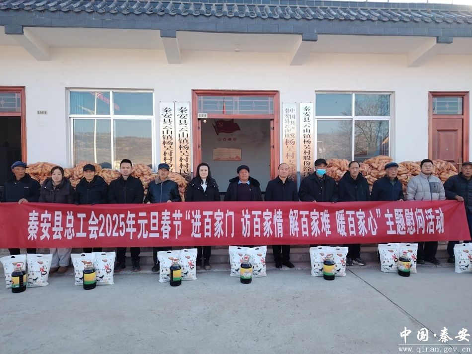 1月14日,秦安县总工会相关负责人一行深入帮扶村云山镇杨吴村开展2025年元旦春节“进百家门、访百家情、解百家难、暖百家心”主题慰问活动,及时把党和政府的关怀和工会组织的温暖送到困难群众的心坎上。