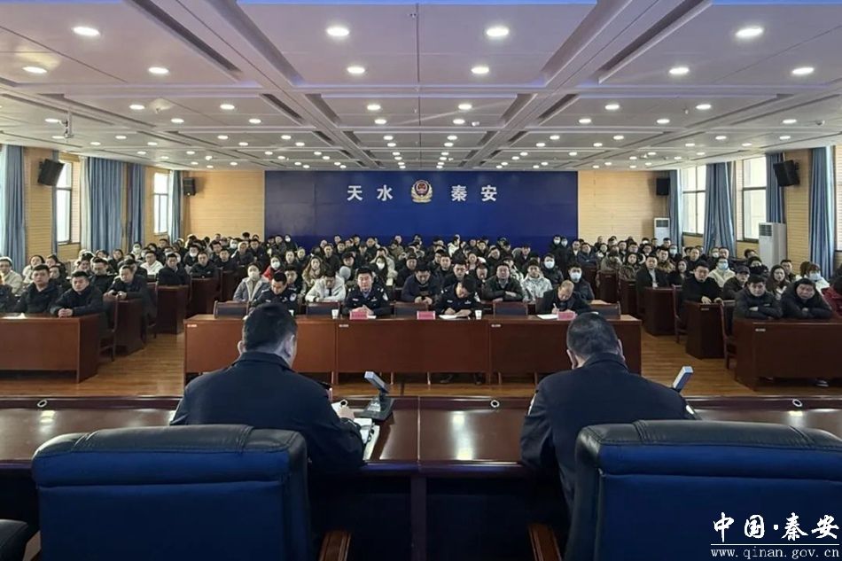 为进一步加强行业场所治安管理,严格规范场所经营秩序,提高行业场所内部安全防范水平,近日,秦安县公安局组织召开了全县重点行业场所治安管理工作会议。公安局,城区四所、治安大队、指挥中心相关负责人及全县旅馆业、KTV、酒吧、棋牌室等行业场所负责人共 200余人参加会议。