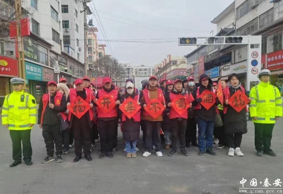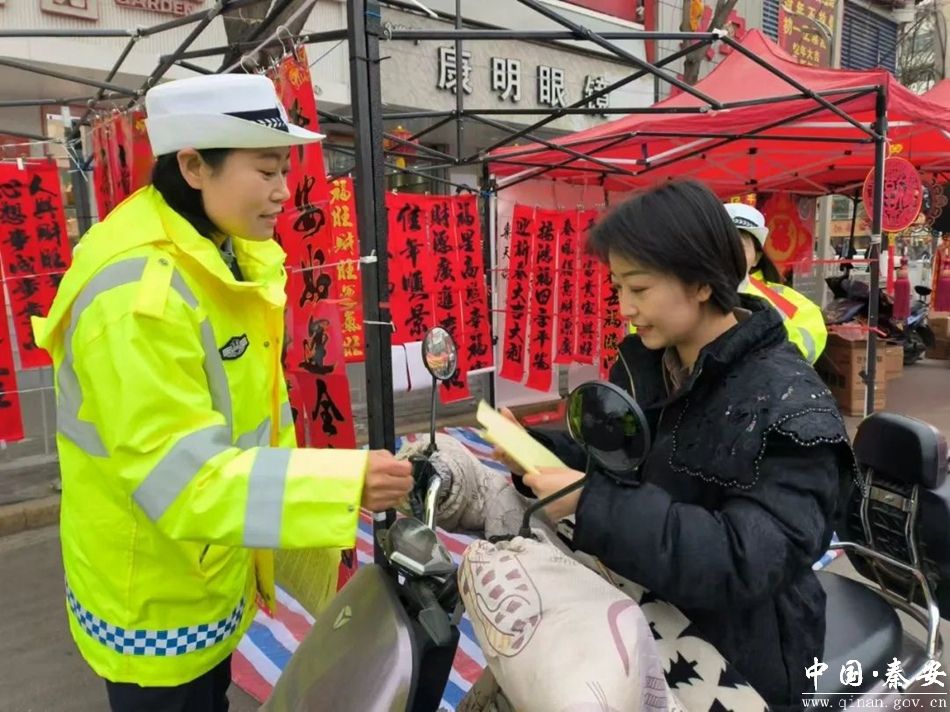 1月17日,秦安县公安局交警大队组织宣传民辅警走进年货市场,积极开展交通安全宣传活动。