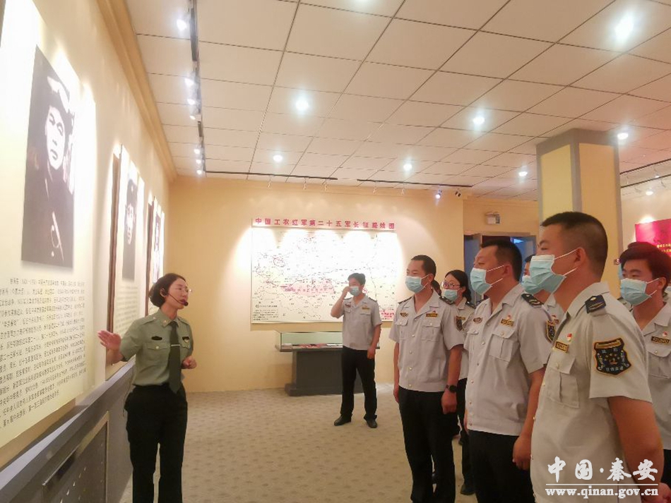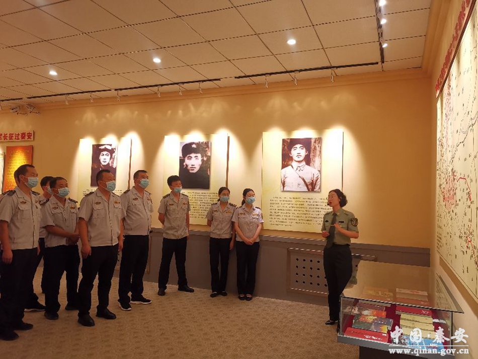 活动中,全体党员面对鲜红的中国共产党党旗,举起右臂庄严宣誓、重温誓词,表达了不忘初心、牢记使命的坚定信念。从红军长征过秦安到人民解放军解放秦安,再到在党的领导下秦安人民进行革命建设,透过200多幅图片和40余件革命历史文物,生动再现了中国共产党带领秦安人民团结奋斗、不断进取的历史画卷。党员们到一幅幅老照片及展板前驻足观看,详细聆听着讲解员讲述先烈们的英雄事迹,全体党员深刻地感受了从1935年到改革开放以来秦安的革命风雨历程和百年沧桑巨变,仿佛又回到了当年的峥嵘岁月。