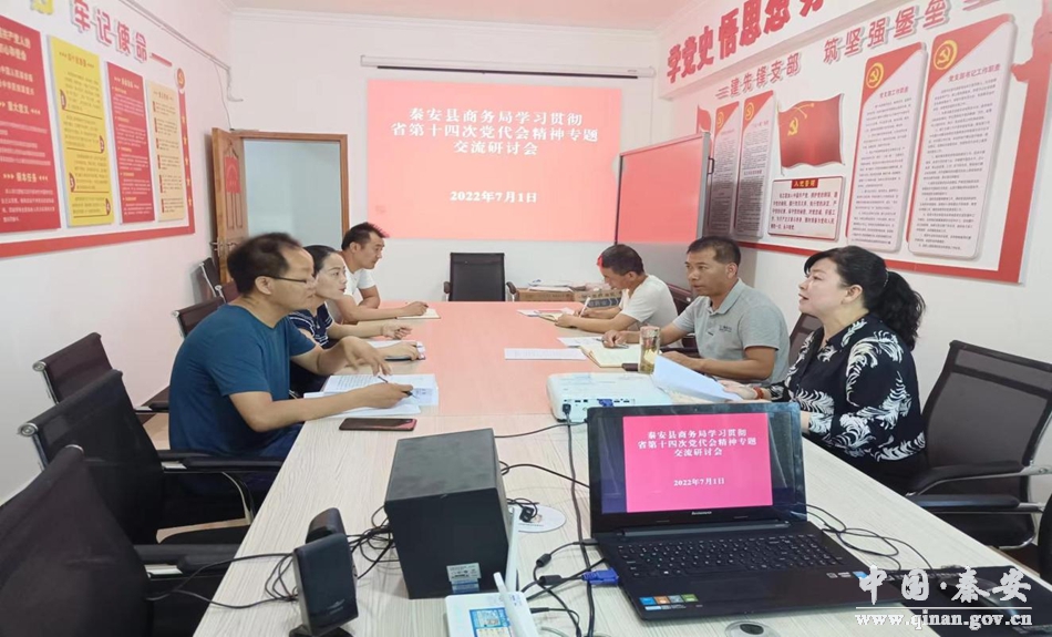 为深入学习贯彻中国共产党甘肃省第十四次代表大会精神,7月1日,秦安县商务局召开党组理论学习中心组(扩大)会议,学习贯彻省第十四次党代会精神并进行交流研讨。