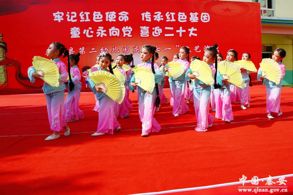 为帮助幼儿深入了解“七一”建党节,培养幼儿拥护中国共产党和热爱祖国的情感,在“七一”建党节来临之际,秦安县第二幼儿园党支部组织开展了“童心永向党、喜迎二十大”红色文艺汇演。