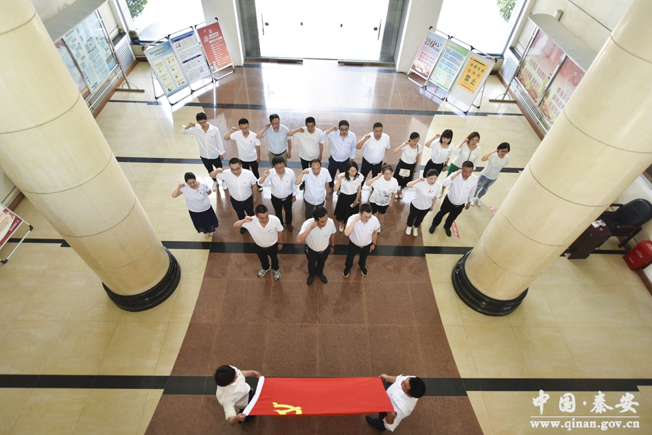 “我志愿加入中国共产党……随时准备为党和人民牺牲一切,永不叛党。”秦安县财政局全体党员,共同高举右拳,庄严宣誓,进一步坚定政治信念,牢记初心使命。