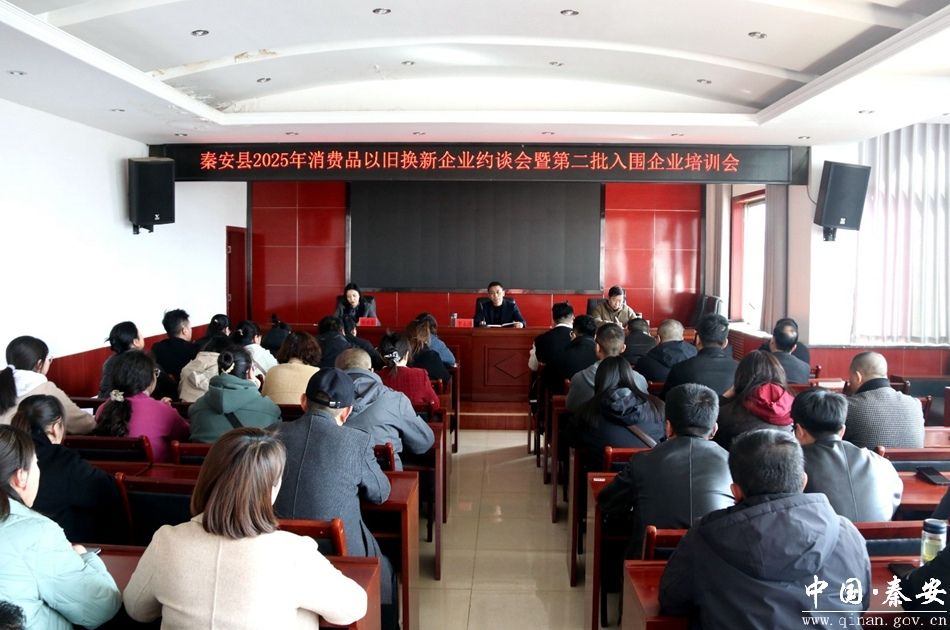 3月19日,秦安县2025年消费品以旧换新企业约谈会暨第二批入围企业培训会召开。县商务局有关负责人及2025年全县消费品以旧换新第一批、第二批入围的123家企业负责人和业务人员参加会议。