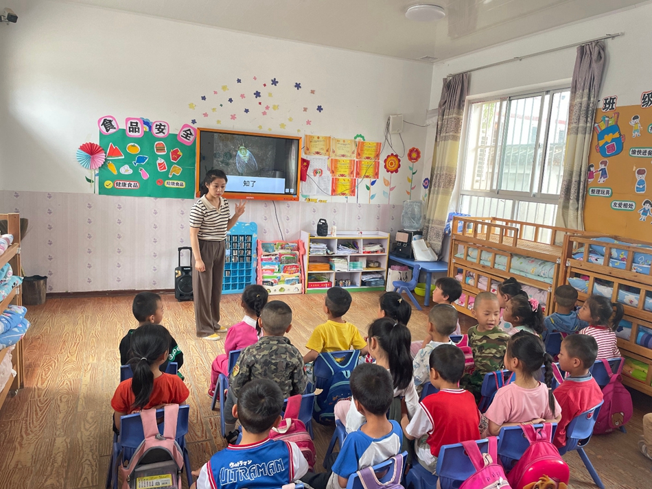 活动中,中心幼儿园的两名骨干教师为薛李幼儿园准备了中班音乐活动《夏天的雷雨》和大班社会活动《夏天的声音》。这两节活动课,创意新颖、设计巧妙,老师亲切自然的教态、灵活自如的引导,深深吸引着每一个孩子,激发孩子积极主动探索。