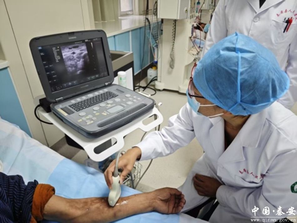 从渤海之滨到陇山脚下,天津专家带来的超声引导技术,为县人民医院护理团队装上了一双“穿透皮肤的眼睛”。通过超声实时成像,医护人员能够清晰观察血管走向,精准完成内瘘穿刺,有效降低了患者因反复穿刺带来的疼痛感和血肿风险。这项“既治身又暖心”的技术将持续护航秦安透析患者,让更多生命在精准医疗中重获尊严与自由。