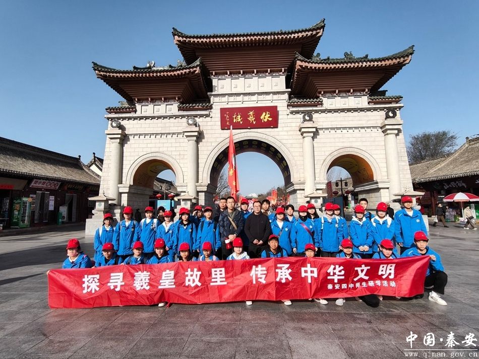 为弘扬中华优秀传统文化,厚植家国情怀,提升学生历史学科核心素养,3月23日,秦安县第四中学以“寻根義皇故里,传承中华文明”为主题,组织高一年级师生50余人赴天水市伏羲庙开展研学实践活动。师生共同走进人文圣地,探寻文明之源,助力文旅热潮。