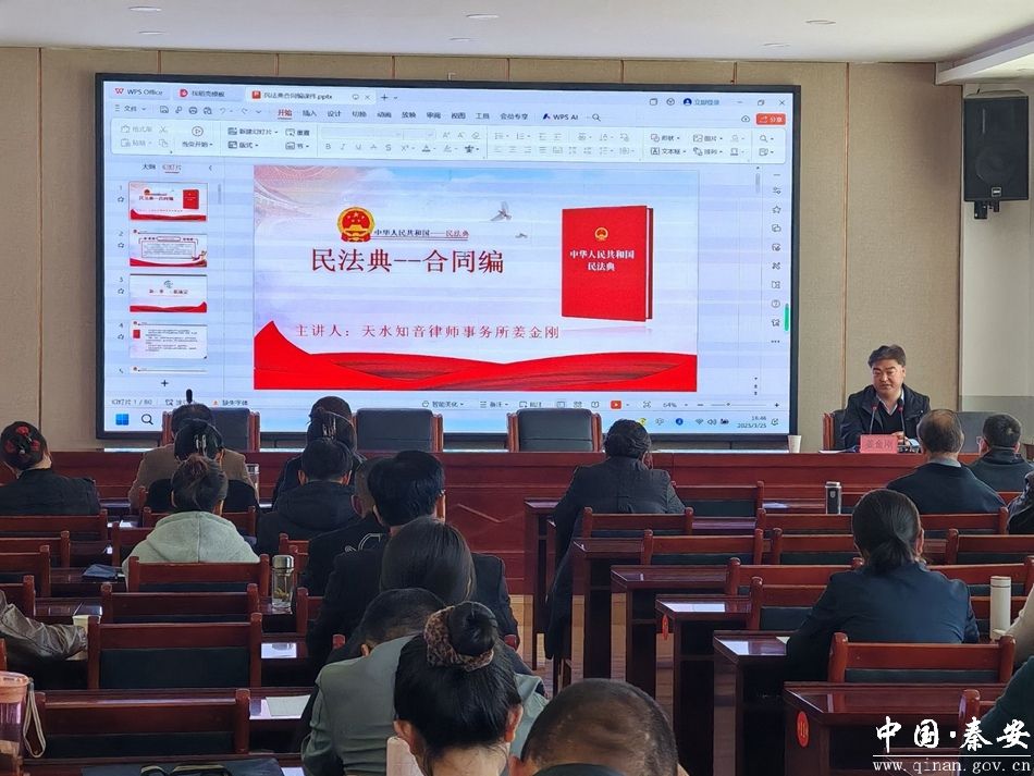 3月25日,天水知音律师事务所律师受邀赴秦安县委党校,为全县“两新”组织党组织书记及党员能力提升培训班90余名学员开展《民法典视角下的买卖合同法律实务》专题法治讲座。