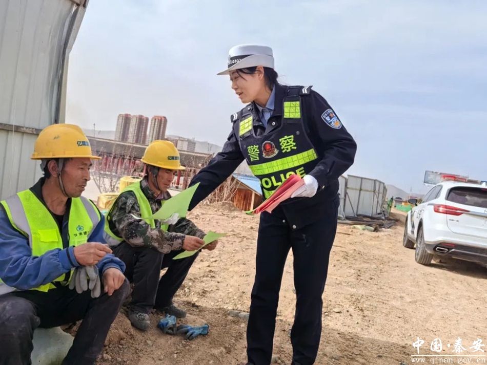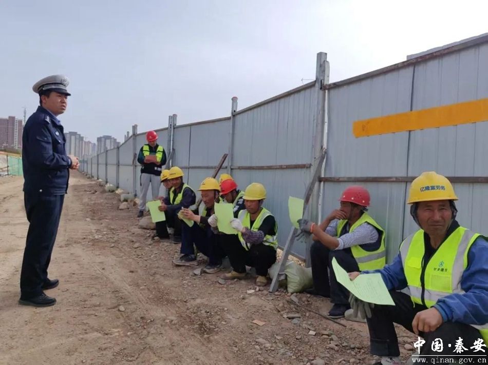 为进一步提高务工人员遵守交通法规的自觉性和安全出行意识,有效预防和减少道路交通事故的发生。4月8日,秦安县公安局交警大队宣传民辅警走进辖区劳务市场、施工工地开展道路交通安全宣传活动,向广大务工人员宣传交通安全知识。