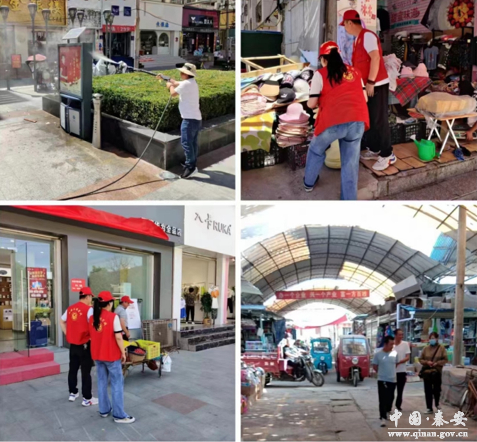 在会后开展的活动中,秦安县市场建设中心积极组织北坛步行街全所人员清洗电线杆、连廊、花园边上的牛皮癣,组织环卫人员、经营户同管理人员一道清扫步行街角角落落的垃圾,清理占道、占廊檐台经营的货物,坚决取缔流动摊贩摆摊设点经营,在女娲文化旅游节前后保持良好的市场秩序和步行街优美环境。