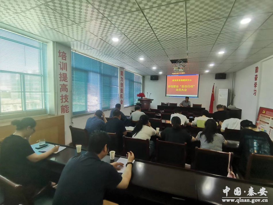 为进一步认真贯彻落实党的十九届六中全会精神、省第十四次党代会、市第八次党代会精神,根据2022年女娲文化旅游节后勤保障实施方案要求,6月13日,秦安县市场建设中心召开市场秩序整治“百日行动”动员大会,会上明确6月13日至9月23日集中开展所属各市场环境卫生、市场秩序整治“百日行动”。