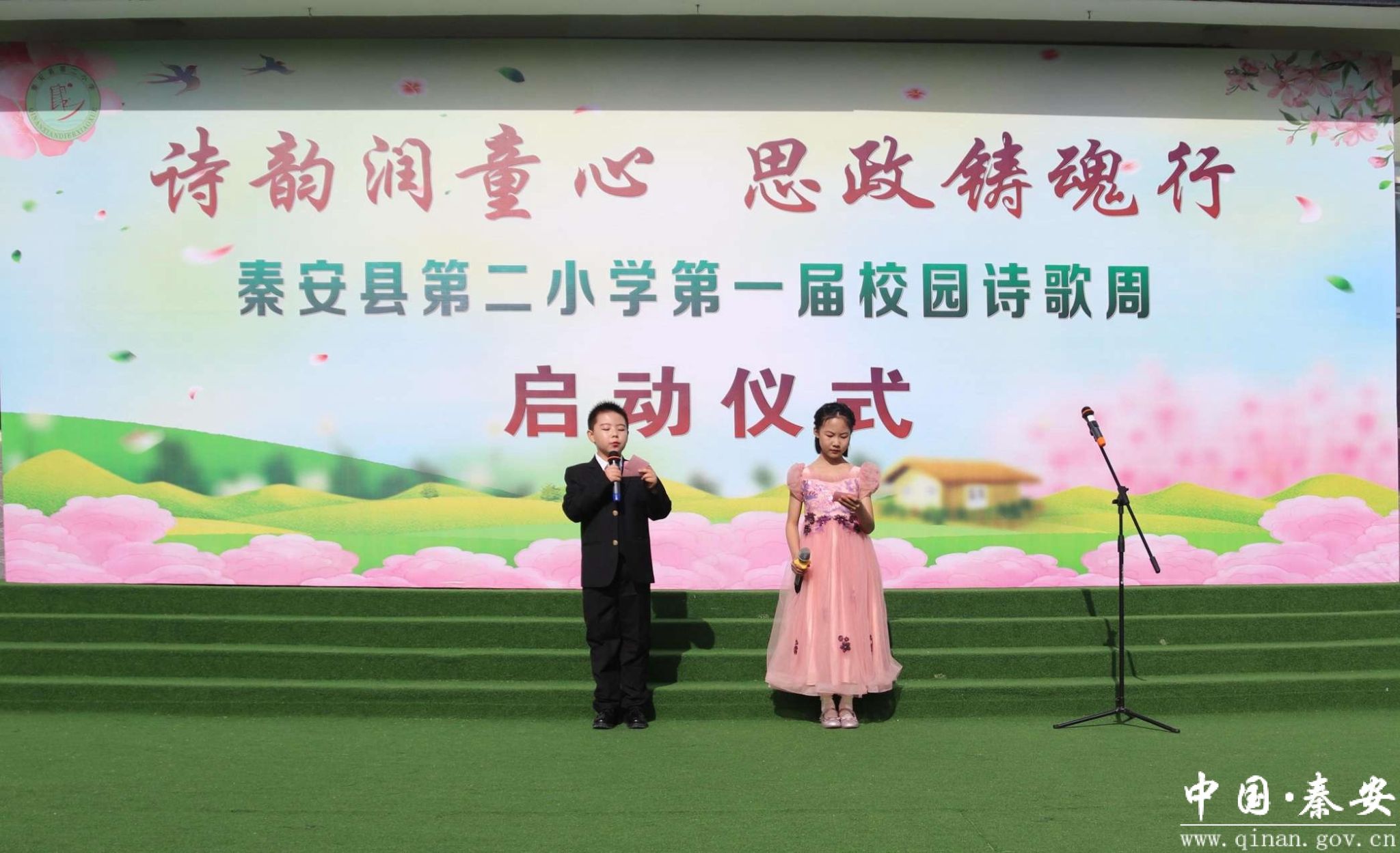 4月23日,秦安县第二小学结合第30个“世界读书日”活动,举行“诗韵润童心 思政铸魂行”第一届校园诗歌周活动。