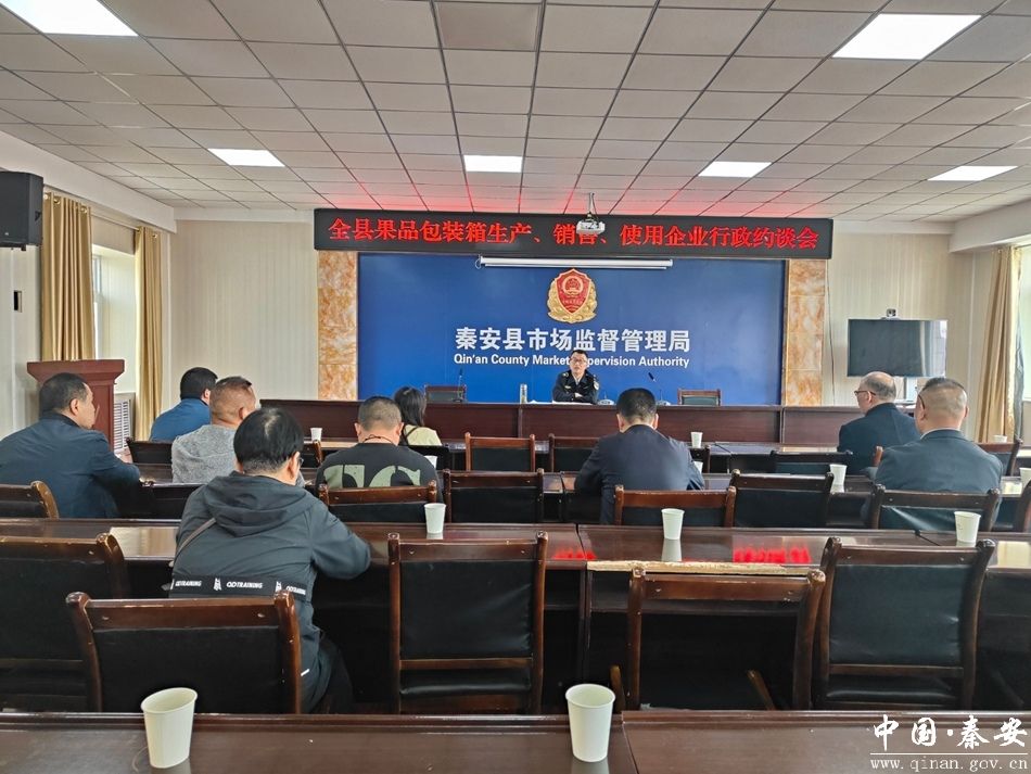 针对近期网民反映省内某地苹果包装箱夹层存在灌注水泥等“变相增重”问题,4月24日,秦安县市场监管局迅速组织召开全县果品包装箱生产、销售经营主体约谈会议,督促各企业筑牢法治意识,坚守诚信经营底线,保障消费者合法权益,以“零容忍”态度重拳整治“变相增重”违法行为,共同守护“秦安蜜桃”“静宁苹果”“天水花牛苹果”等甘肃特色农业的“金字招牌”。全县果品包装行业代表及部分果品经销商共40余人参会。