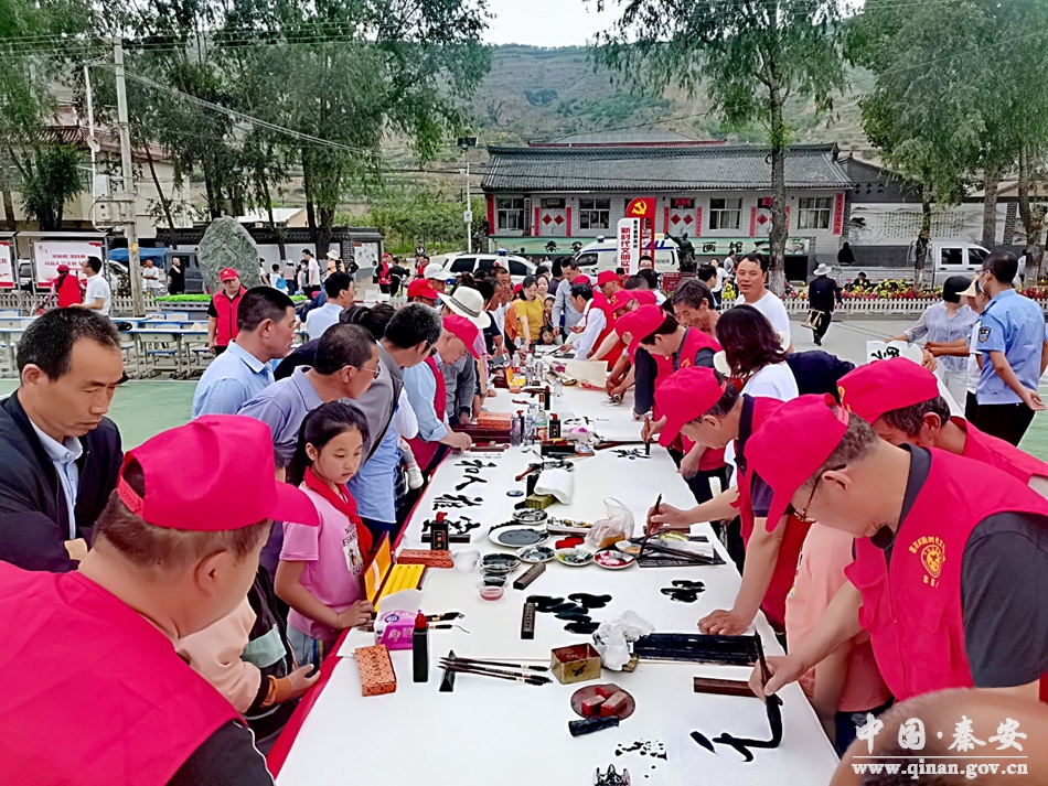 为弘扬中华优秀传统文化,进一步推动新时代文明实践活动走深走实。近日,由秦安县文化馆组织的“喜迎二十大 文化乡村行”送书画下乡惠民活动走进了莲花镇郭河村,为当地群众送去了一顿精美的“文化大餐”。