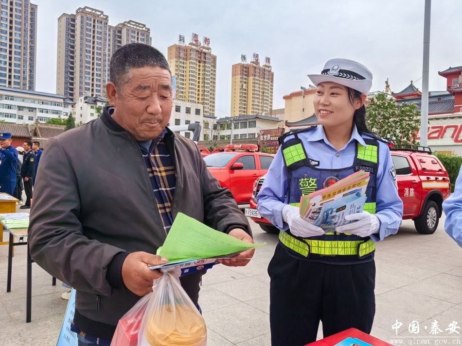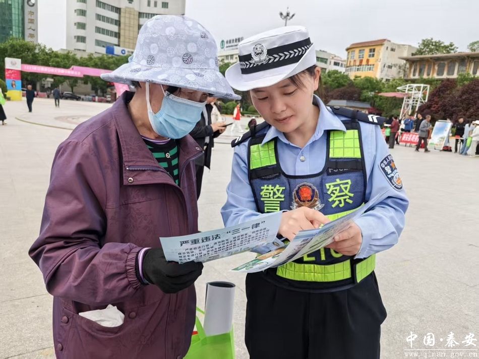 5月12日,秦安县公安局交警大队以“5.12”防震减灾日为契机组织警力到兴国文化广场开展主题交通安全宣传活动。