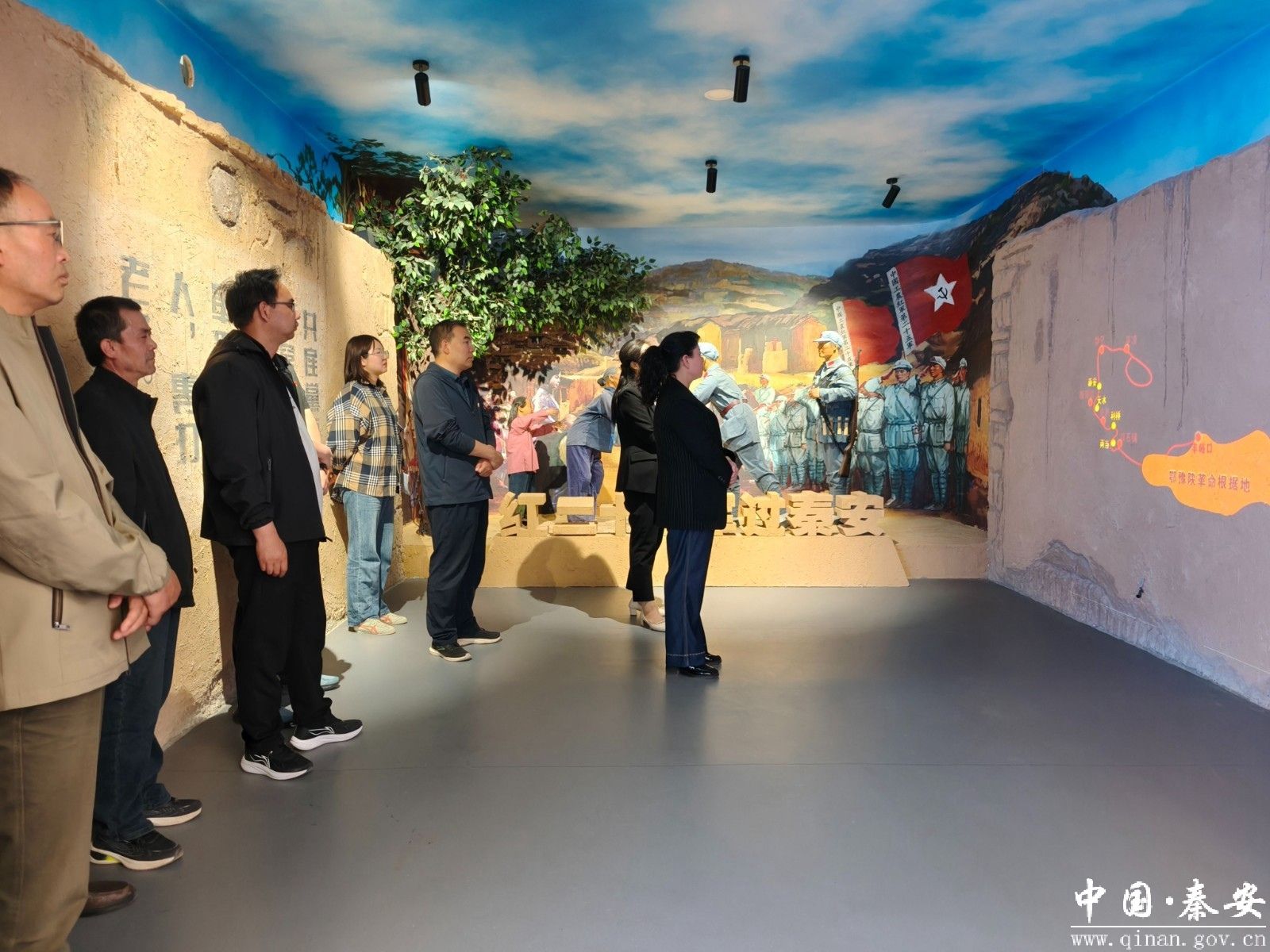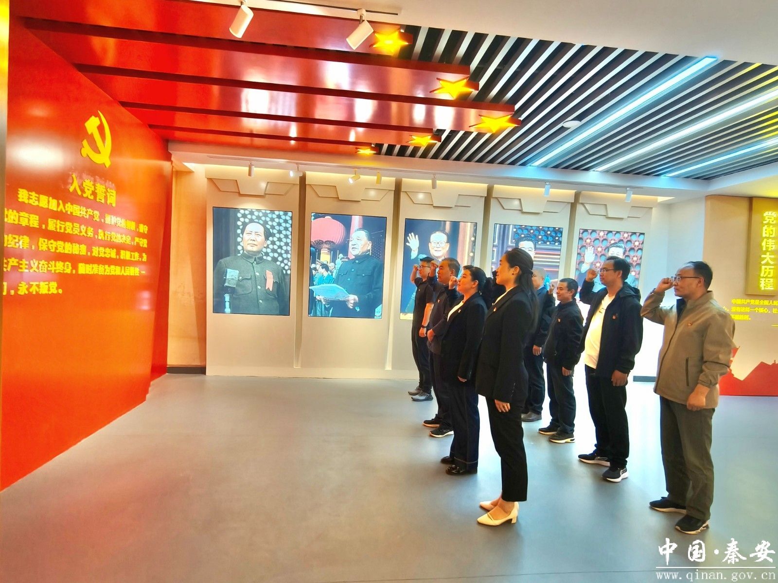 秦安县智慧党建教育基地是集培训教育、党内政治生活等活动于一体的党建教育基地,包括序厅、党的伟大历程、发展中的秦安、红色体验区和智慧党课讲堂五大部分。研究室全体党员干部在“序厅”重温了入党誓词。场馆第二部分“党的伟大历程”,让党员干部直观地了解到党的光辉历程。在场馆核心展示部分“发展中的秦安”,展示了党的十八大以来,在党建引领下秦安县上下同心、共谋发展的场景。场馆还复原了红军长征过秦安的景象,右侧墙面动态投影了当时的红军行军路线图,全体党员干部表示要深刻铭记这段红色历史,学习伟大的长征精神,走好今天的长征路。