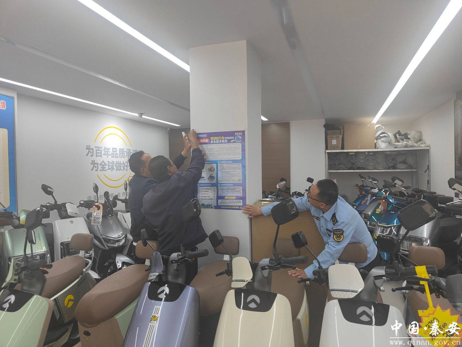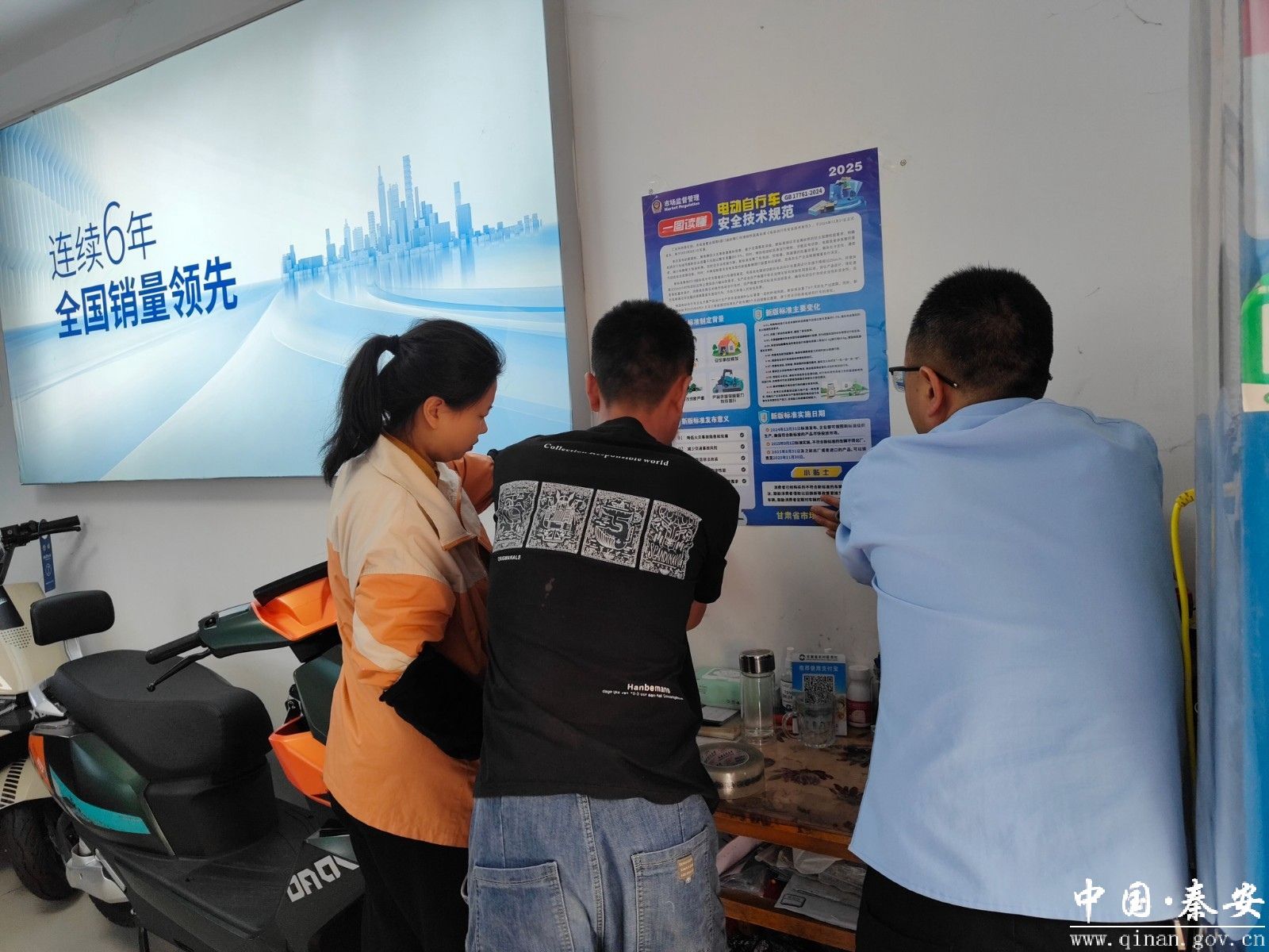 为贯彻落实《电动自行车安全技术规范》(GB17761-2024)新国标要求,进一步规范电动自行车市场秩序,保障消费者合法权益,连日来,秦安县市场监管局组织执法人员深入辖区电动自行车销售企业及门店,通过政策宣贯、现场指导、警示告诫等方式,推动新国标落地见效,全力筑牢产品质量安全防线。