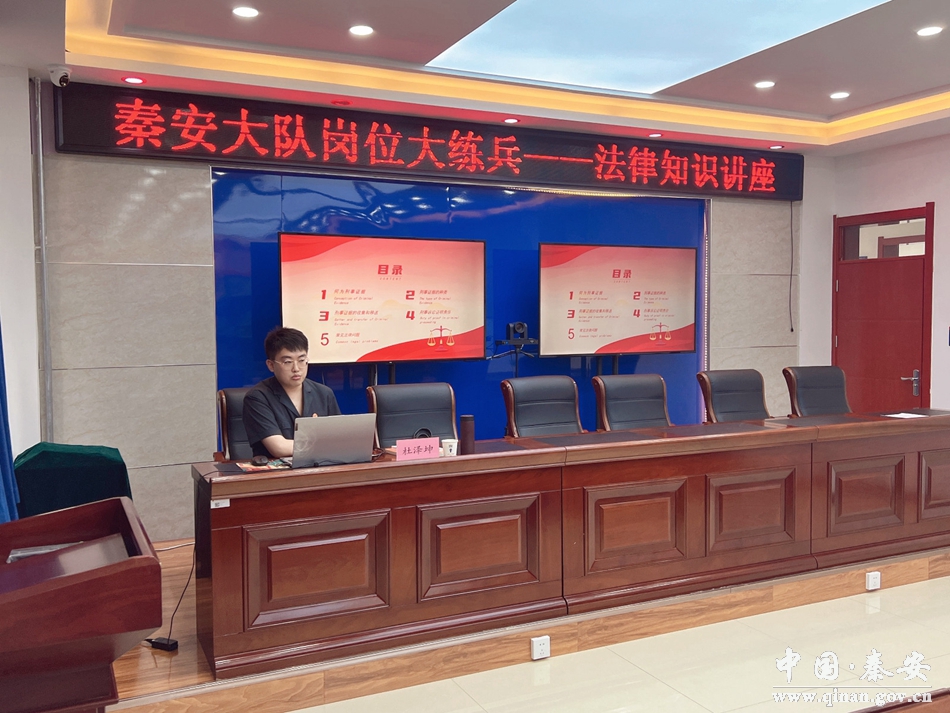 6月6日,秦安县消防救援大队开展法律知识培训,邀请了秦安县法院刑事审判庭法官助理杜泽坤为消防指战员进行培训。